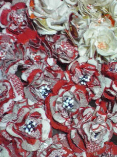 帯をといて、コサージュを作りました。
