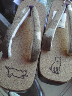 コルクにネコちゃんが描いてあります!こちらも同じく右近の下駄。