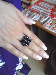 ちなみに、今日の指輪はスワロフスキーを使ったお手製。
