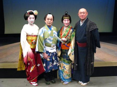 (写真:向かって一番右が中塚先生。今年1月の京都きものツアー:南座にて)