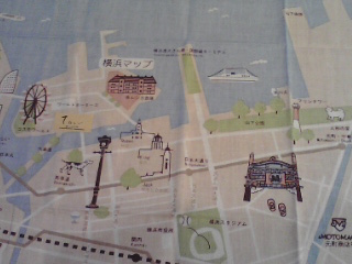 赤レンガ倉庫や、山下公園、中華街、みなとみらい、元町商店街…などなど、その周辺の地図が描かれています。