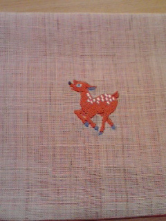 綺麗なブルーの糸で、バンビのような鹿が刺繍してあります!