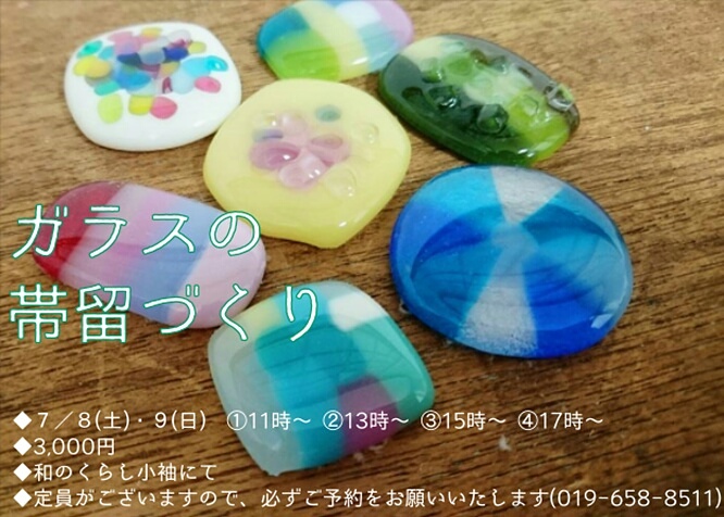 今週末は【ガラスの帯留めづくり】!