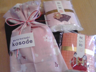 桜やお雛様の飴を、“桜”の柄のハンカチで。