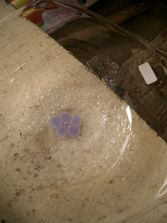 昨日は、午後の制作風景を見せていただきました。好恵さんが紫の小さな花柄のついた器をつくるところです。