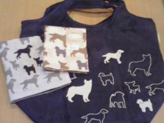 犬柄のハンカチや小ぶりなエコバッグ。