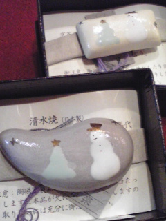 きもののおしゃれは「季節の先取り」ですから、11月くらいから身につけても良い柄です。クリスマス直前~当日のオシャレにも滑り込みでどうぞっ! 清水焼・クリスマス帯留め¥5,250。