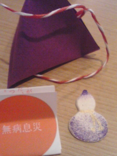 「おみくじ」になっています。お腹の部分のシールをはがして紐を引っ張ると、おみくじが出てきます!