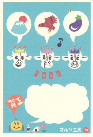 2009年の始まりは、ハッピーオーラ全開のマルツ工房年賀状で、お友達に福を届けてくださいね。