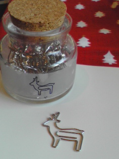 そして、クリスマスってわけではないけれど…奈良のモチーフ「鹿」の形のクリップ。愛らしいでしょう~!!仕事や、勉強が楽しくなりそうです。デスクの上にぜひ、おひとつ… (30個入りで840円)