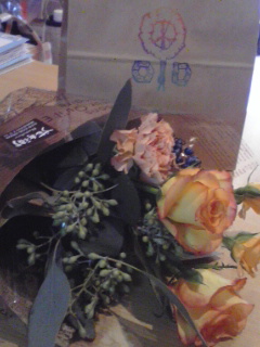 朝、山岸の花屋さん「花兵衛」さんに寄って小さい花束を作ってもらいました!