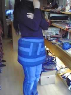 このはんてん屋さんの「腰ふとん」。小袖の店頭にもいくつか在庫がございますが、今回お借りした商品は、一度茨城へお返しします。
