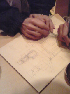 2階へご案内しましたら、とてももったいない…と。もっと心地いい空間を創れますよ!って。それから、ラフのスケッチ見ながら、みなでああだ、こうだ…と作戦会議になりまして。