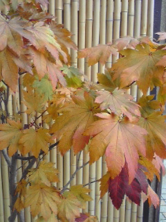 小袖の前の楓も、日に日に橙色になっています。