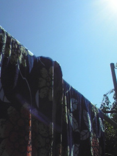 今日は秋晴れ?!日中は特にいいお天気でしたね。浴衣を洗うチャンスを待っていた私には絶好のお洗濯日和でした。8月中、毎日着た浴衣を洗いました。これまで、クリーニングに出していたので、自分で洗うのは初めて。私は綿の浴衣を着ていましたので、手洗いでも大丈夫!素材によってお手入れ方法は違ってきますので、ご自分の浴衣の素材が何だったのか、あらかじめ確認されてからお手入れすると良いと思います。小千谷ちぢみなんかも、お洗濯は可能ですね。