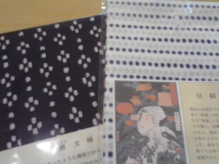 (左)初めて入荷した絣文様もステキです!¥840 (右)有松の板締め「豆絞り」プリントにはない、手絞りならではの本物の風合いです。本物は、豆がいびつなんです。¥1,890