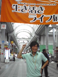今朝は、ちょっとおつかいをしながら肴町のアーケードをくぐって出勤しました。「生き活きライフ展」という福祉機器やユニバーサルデザインフードなんかを紹介しているイベントをやっていまして、いろいろと感心しながら歩いていましたら、弟に遭遇!福祉系で勤めている彼も、バッチリ参加しておりました。街で見かけたら、また車イスなどが必要な方は「よっ、ダイン!」とお気軽に声をお掛け下さい☆