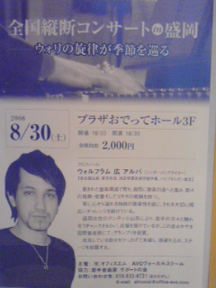 最後はこちら。今週の土曜日、30日に開催される「ウォルフラム 広 アルバ」さんのライブ。おかやま国際音楽祭にてグランプリを受賞した実力派。盛岡でも何度かライブをされているそうで、その歌声を聴いた方々の評判は上々!!「とてもいいっ♪」 ということなので、気になる方はぜひ行ってみましょう!!告知用のポスターを見るだけでも、かなりのイケメンですよ!…余談ですけど。