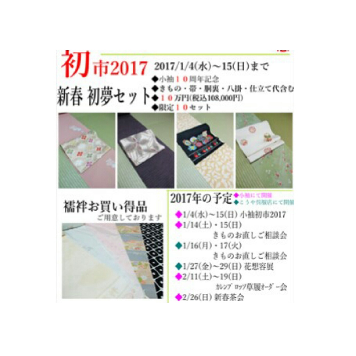 初売り内容はこちら!→小袖初市2017